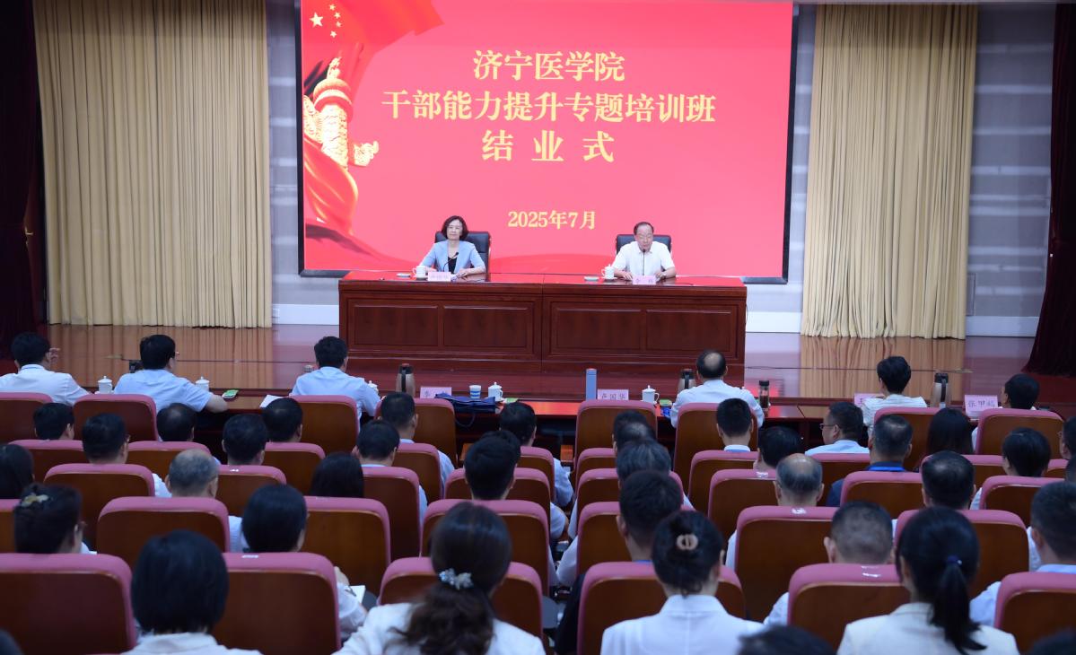 卢国华指出,本次培训旨在深入学习习近平新时代中国特色社会主义思想,贯彻落实习近平总书记关于教育强国建设的重要讲话重要指示精神,全面实施《教育强国建设规划纲要(2024—2035年)》和三年行动计划重要部署,紧紧围绕“为党育人、为国育才”目标,结合学校干部队伍建设实际,强化政治担当,提升干部政治能力和业务水平,凝心聚力、奋发有为,扎实推进学校高质量发展。通过培训,进一步统一思想、凝聚共识,深化了目标认知,战略方向更加清晰坚定;深化了路径探索,关键抓手更加精准有力;深化了责任担当,奋斗激情更加昂扬澎湃。她要求,要知行合一,攻坚克难,将此次培训汲取的智慧、激发的热情,转化为推动工作的具体行动和实际成效。要在学深悟透、融会贯通上持续用力,做习近平新时代中国特色社会主义思想的坚定践行者;在聚焦重点、攻坚突破上担当作为,做事业发展的实干闯将;在解放思想、提升能力上走在前列,当好凝心聚力的领头雁。她强调,要坚持立德树人根本任务,优化专业结构,深化教育教学改革,不断提高人才培养质量;扎实推进师资队伍建设,引育并举,加快优秀人才集聚,构建领军人才、中坚力量、青年人才、后备力量四大梯队有序衔接的人才工作新格局;强化学科建设,聚焦服务国家战略,凝炼方向,重特色强优势;坚持创新驱动,将科技创新作为推动高质量发展的内生动力,致力产学研融合发展,形成平台—团队—项目—成果一体化格局;深化“放管服”改革,激发二级学院办学活力,构建权责清晰、运行高效、充满活力的现代大学治理体系;加强党建工作体系化建设、特色化打造,推动党建工作与人才培养、科学研究、社会服务等中心工作深度融合,以高质量党建引领保障高质量发展。全体干部要自觉将岗位职责融入学校发展大局,以“对标一流”的锐气破除思维桎梏,以“啃硬骨头”的胆气攻克改革险阻,以“功成有我”的志气引领发展突围,奋力谱写济宁医学院高质量发展的崭新篇章,为教育强国、健康中国建设贡献济医力量。